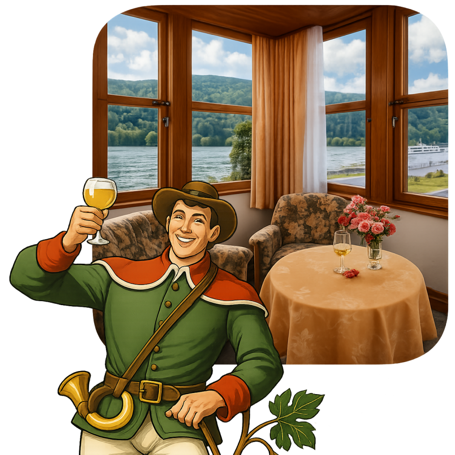 Seit Generationen heißen wir Reisende am Rhein willkommen und schaffen einen Ort, an dem sich unsere Gäste wie zuhause fühlen. Wir legen wert auf persönliche Betreuung, regionale Verbundenheit und eine Atmosphäre, die Ruhe und Genuss vereint. Ob bei einem Glas Rheingauer Wein, einem Stück hausgemachtem Kuchen oder einem Spaziergang am Rheinufer - wir möchten, dass jeder Aufenthalt unvergesslich wird.